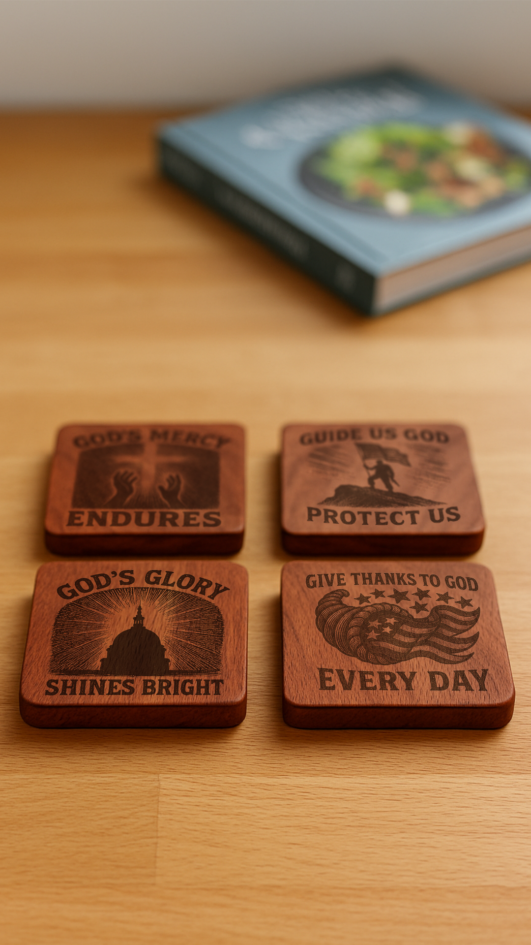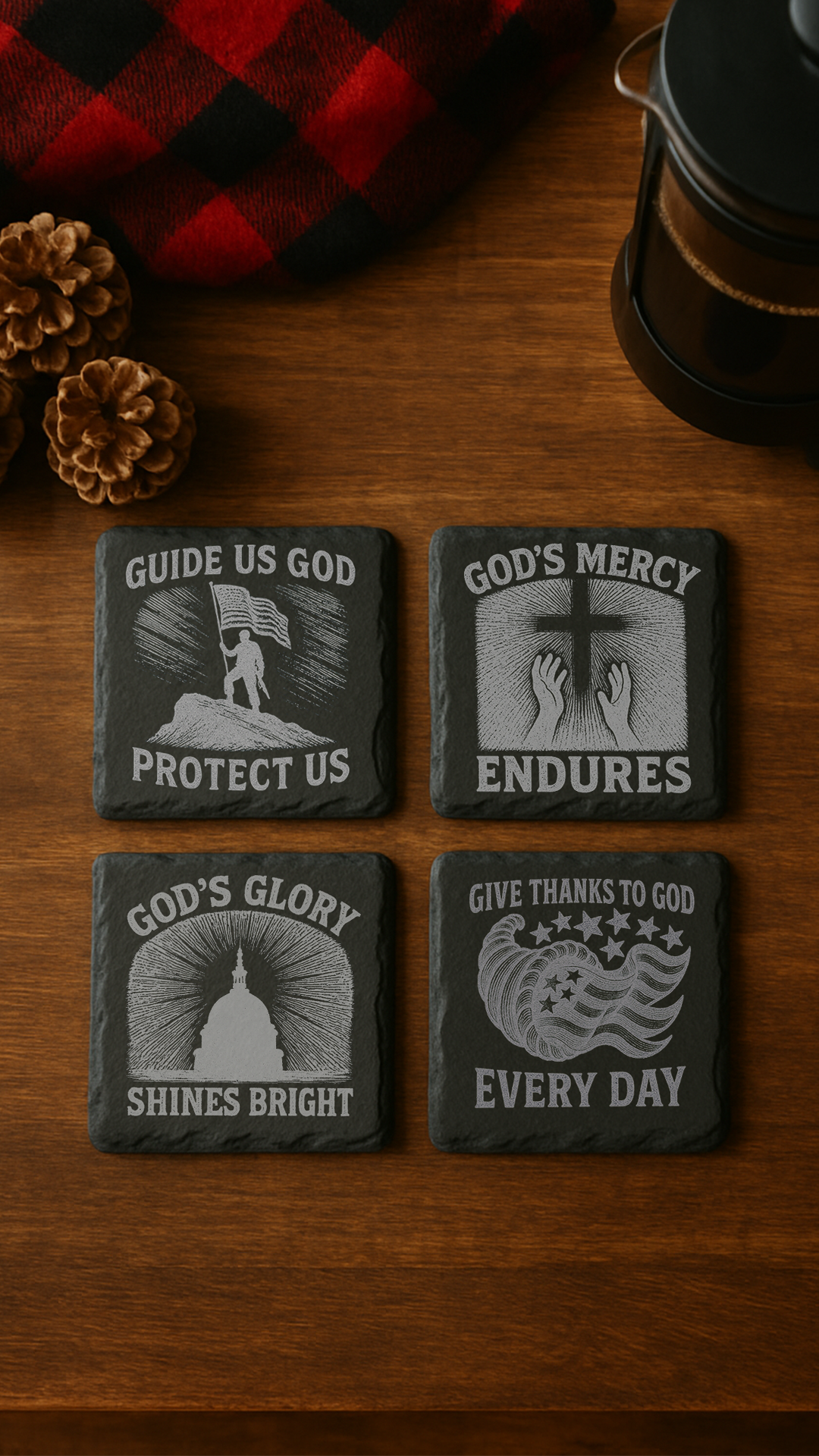 Bring a daily reminder of God’s grace to your home with our Under God Coaster Set, expertly designed and laser-engraved in Pennsylvania, USA. Each set includes four inspirational coasters—choose from square slate, round slate, or square hardwood—to uplift your spirit with every sip.